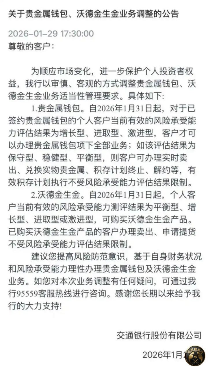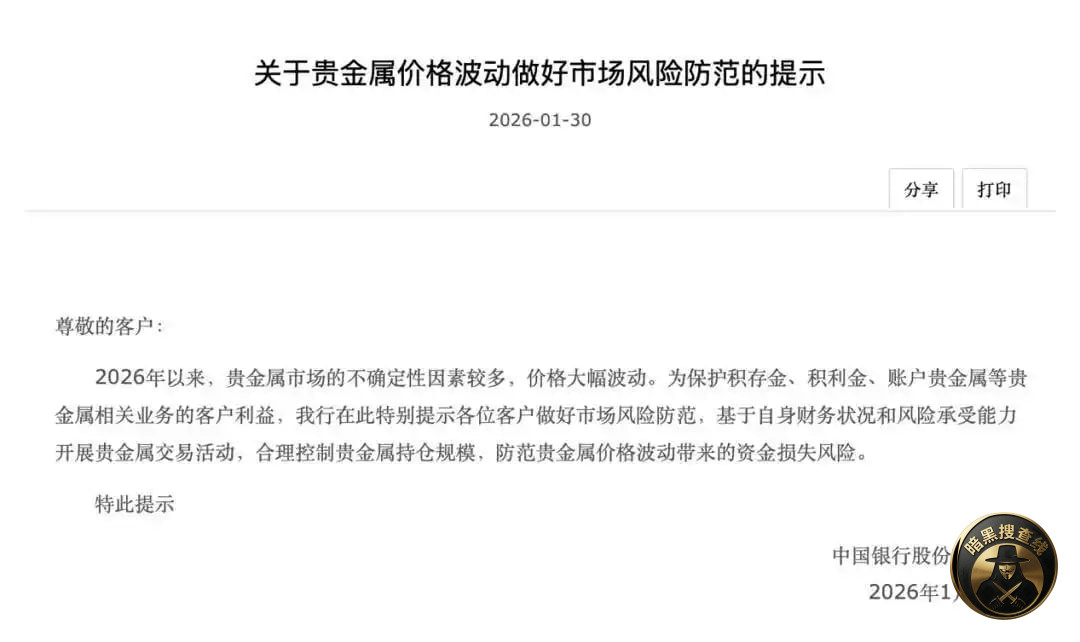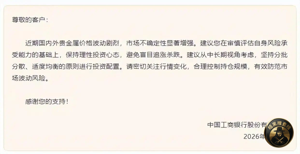 2月1日,近期国内外贵金属价格波动剧烈,市场不确定性显著增强。建议投资者在审慎评估自身风险承受能力的基础上,保持理性投资心态,避免盲目追涨杀跌。