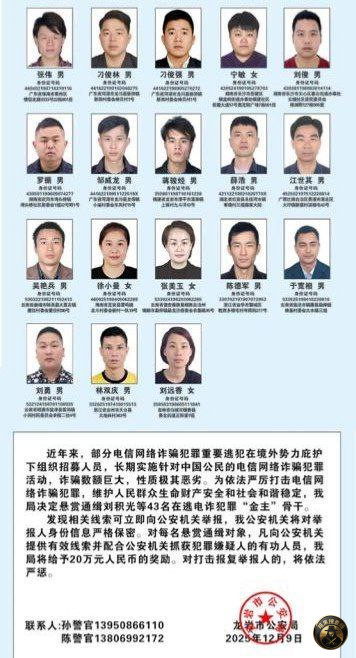 为依法严厉打击跨境电信网络诈骗犯罪,切实维护人民群众财产安全和合法权益,近期公安部发布通缉令,公开通缉100名电信网络诈骗犯罪在逃金主和骨干。其中,这些在逃人员来自全国各地。