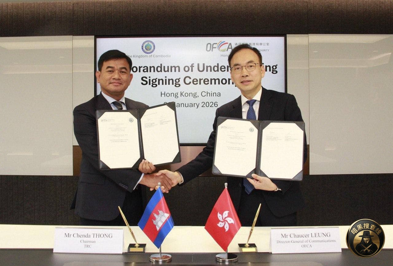 今天,柬埔寨邮电部电信监管局(TRC)主席通振达与中国香港特别行政区通讯事务管理局(OFCA)总监梁仲贤,在香港正式签署了一份合作谅解备忘录。此次签约的核心目标是加强双方在电信领域的协作,共同应对电信诈骗和垃圾信息(Spam)带来的严峻挑战。