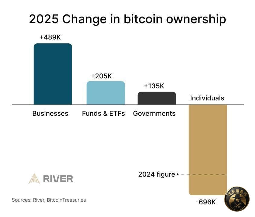 2025年,比特币市场正在发生一场深层结构转移。筹码正从散户手中流向机构与企业。