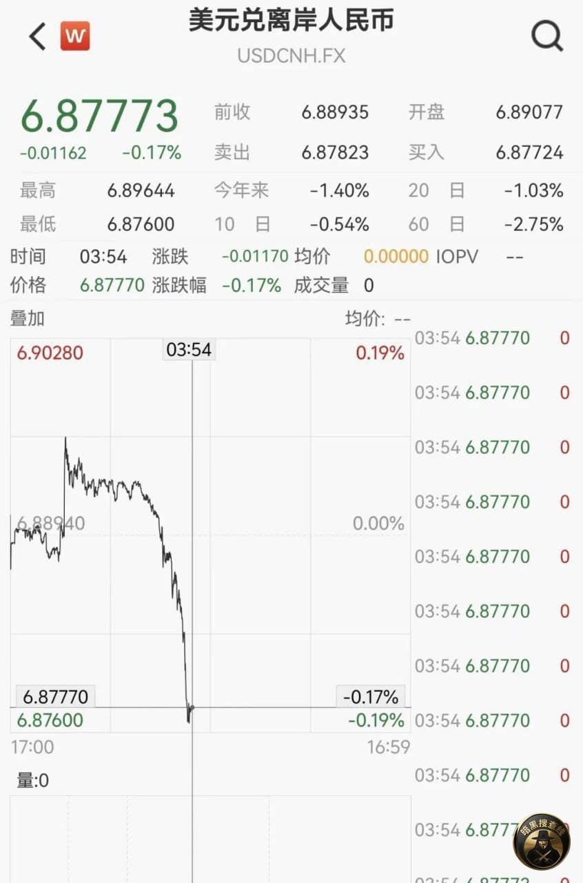 2月24日,离岸人民币对美元汇率大幅上涨,盘中升破6.88关口,日内大涨超110点,创下近两年新高。在岸人民币同步走强,市场情绪乐观。