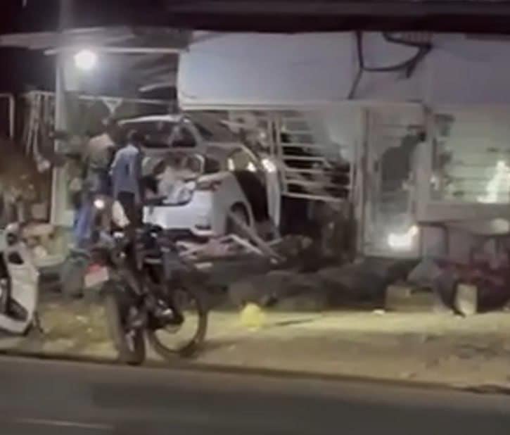 刚刚两个中国人在西港火拼枪战,刚刚跑的时候,车子失控,直接撞到居民房里面去了,现在警方已经赶到现场,正在对这两名嫌疑人进行包围和抓捕