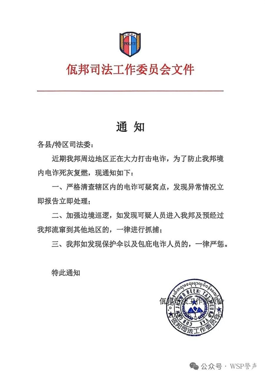 佤邦发布《关于打击防范电信诈骗犯罪的通知》