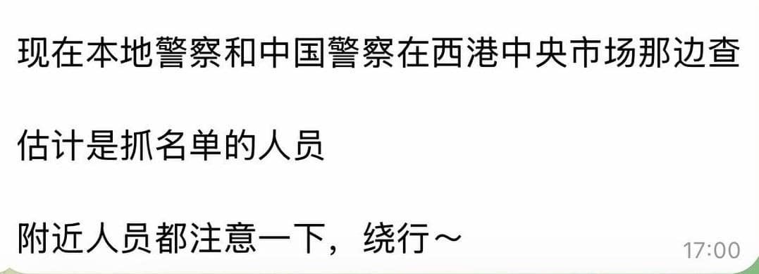#网友反馈:现在本地警察和中国警察正在西港中央市场一带查人