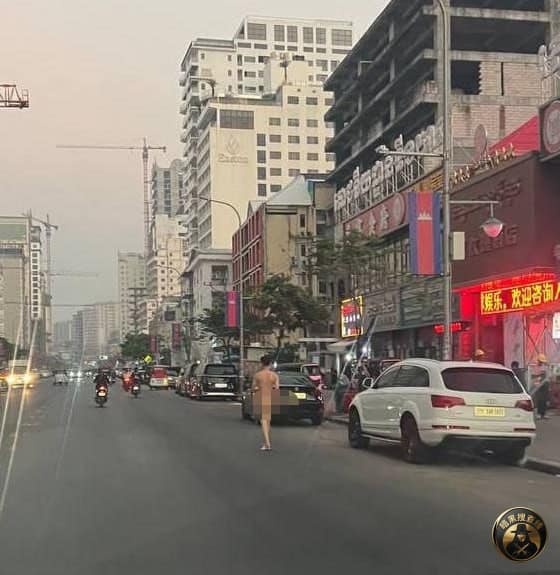 #网友投稿:今天早上,🇰🇭西港/铂莱酒店门口发现一位裸奔英雄,估计又是打K打多了~