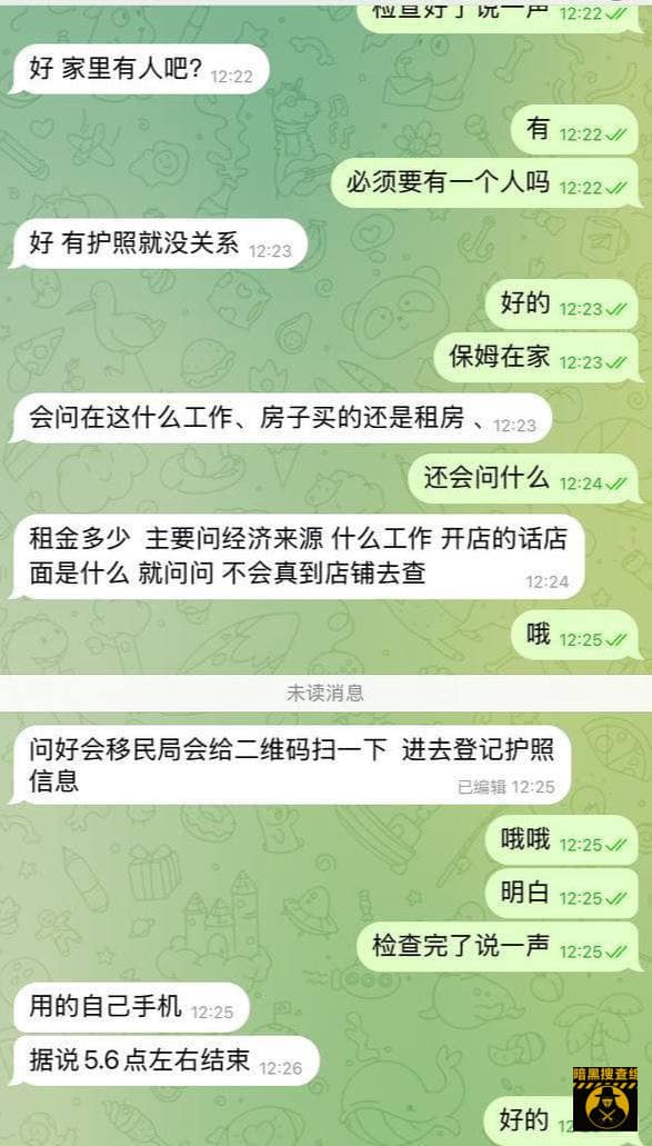 会问在这什么工作、房子买的还是租房、租金多少,主要问经济来源,什么工作,开店的话店面是什么店面在哪里,就问问,不会真到店铺去查,问好之后移民局会给你一张二维码扫一下,进去登记护照。