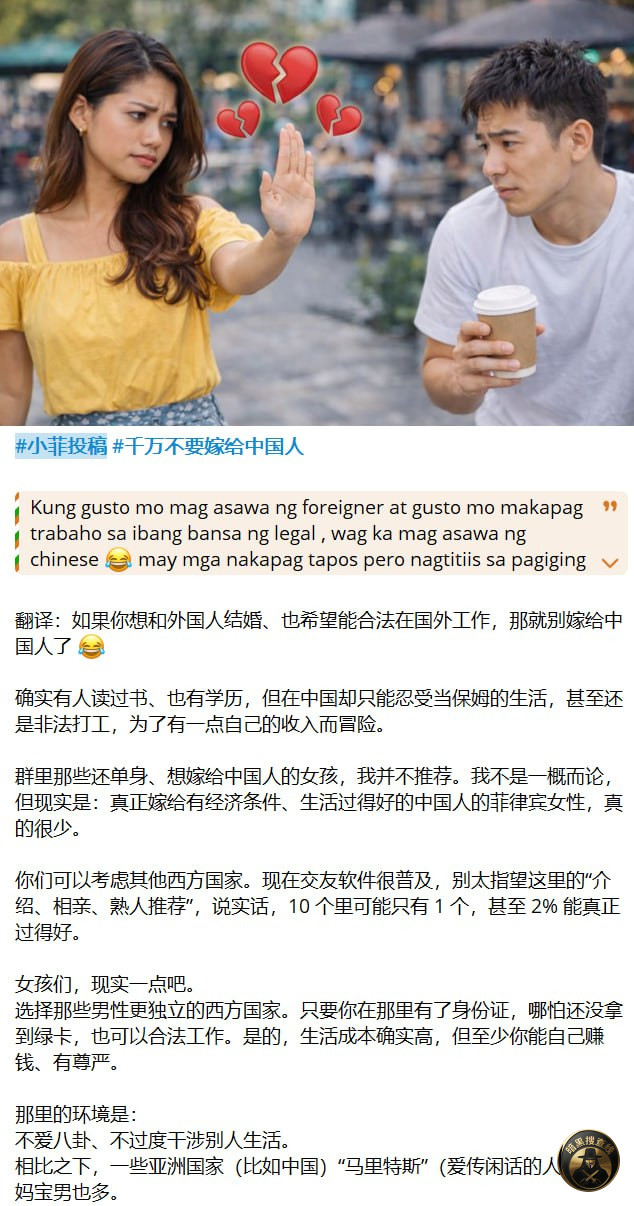 90%的小菲跟中国人回国之后,就是生孩子带孩子,然后打扫卫生收拾家。而且大多数带菲律宾老婆回国的中国人,都不会再每个月给钱了,起码不会给太多,因为国内赚钱难。