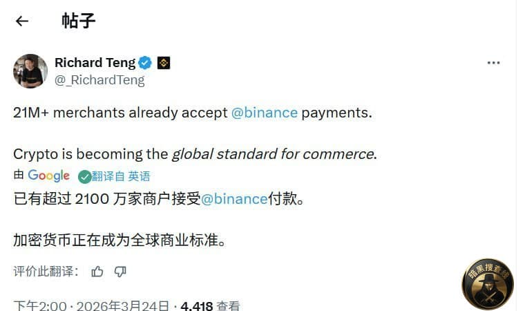 柬埔寨新聞 #币圈新闻 超2100万商家支持币安支付 加密支付成全球商业 #币圈新闻 超2100万商家支持币安支付 加密支付成全球商业新趋势 3月24日,币安联合首席执行官在社交平台发 […] 24 3 月, 2026 By wellchen2020 尚無留言 Read More